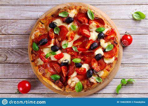 mozzarella, ham, mushrooms, pepperoni, olives, sundried tomatoes, capsicum ,onions.